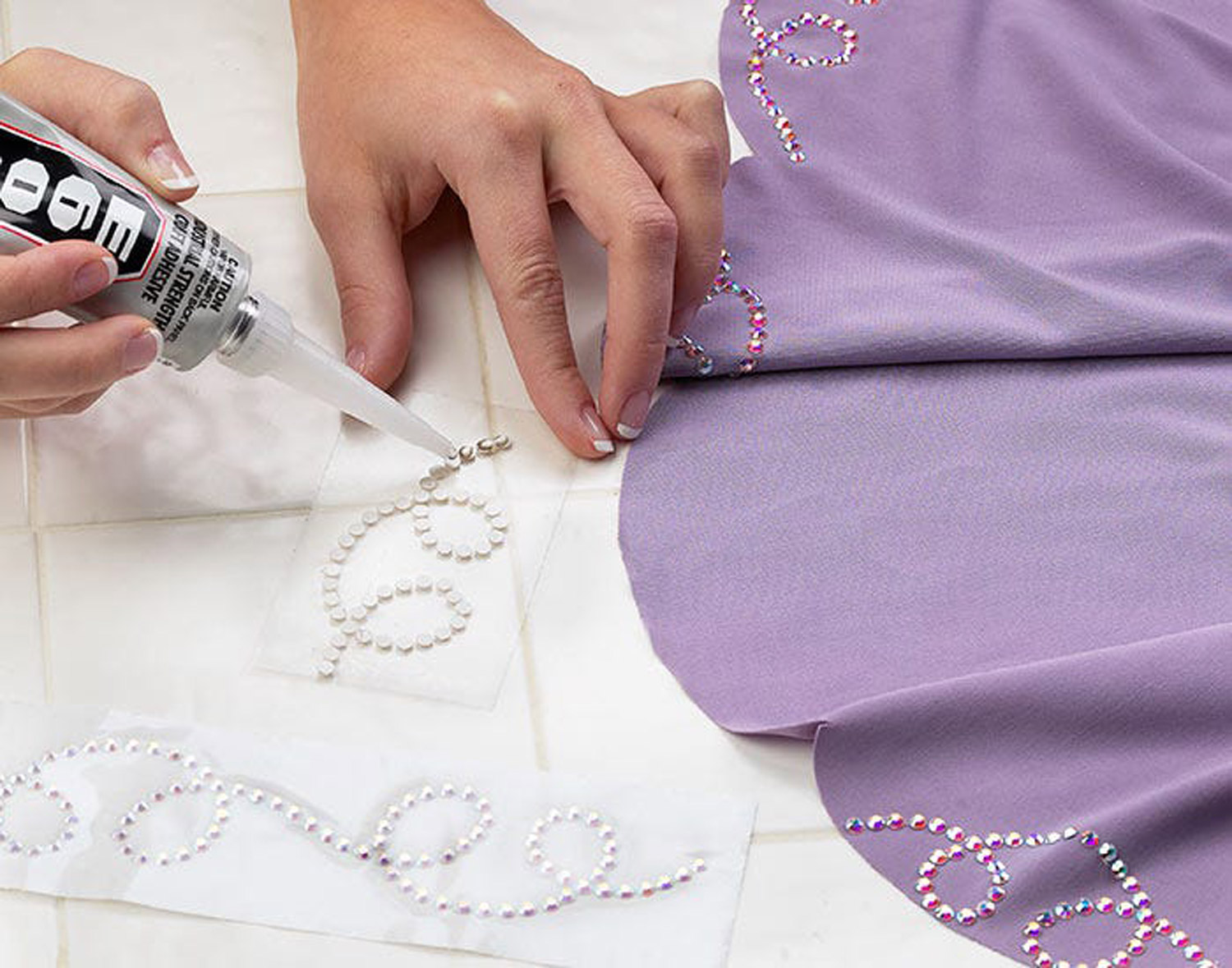 Following embellishment instructions and patterns for accurate placement and professional results.